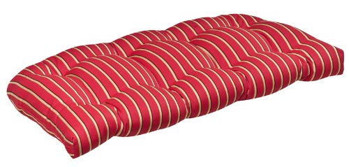 Outdoor Patio Furniture Wicker Loveseat Cushion - Scarlet Red Stripe Sunbrella