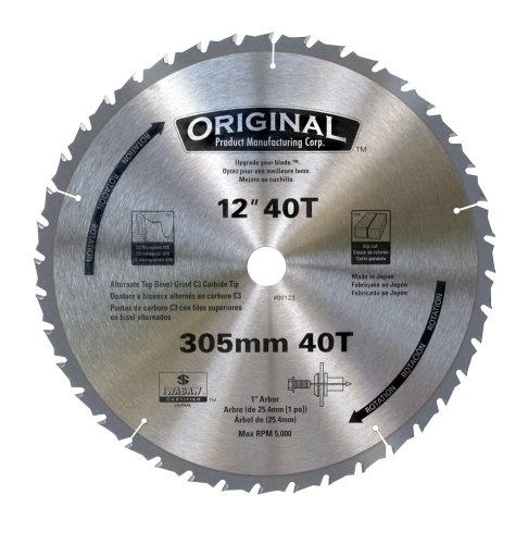 Description Original 00123 12-Inch 40 Tooth ATB General Purpose Miter Saw Blade with 1-Inch Arbor