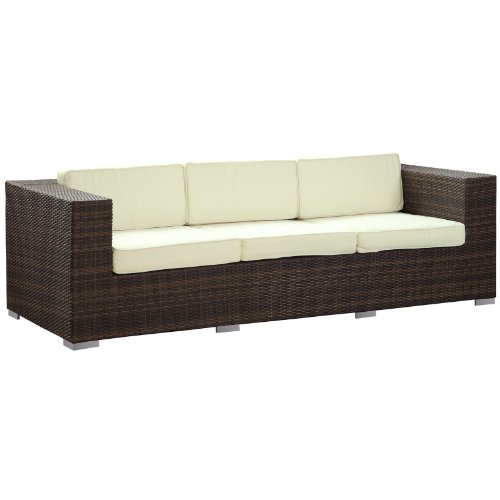 Description LexMod Daytona Outdoor Wicker Patio Sofa in Brown with White Pillows